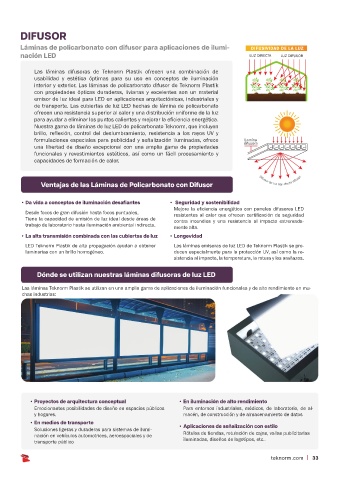Láminas de policarbonato con difusor para aplicaciones de ilumi- DIFUSIVIDAD DE LA LUZ